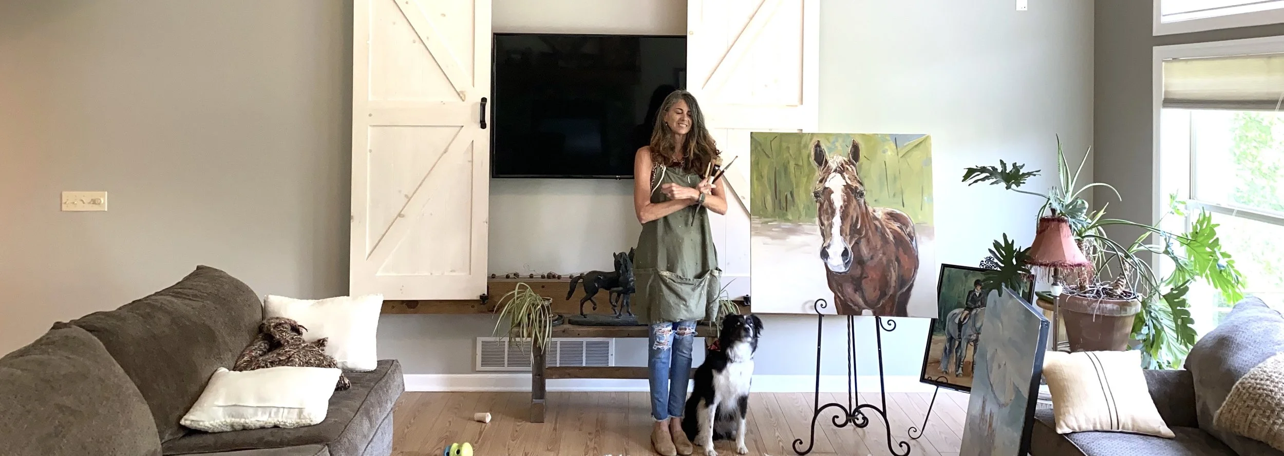 -I paint in watercolor and oil paint focusing on the horse, dog, cat and assorted wildlife.
